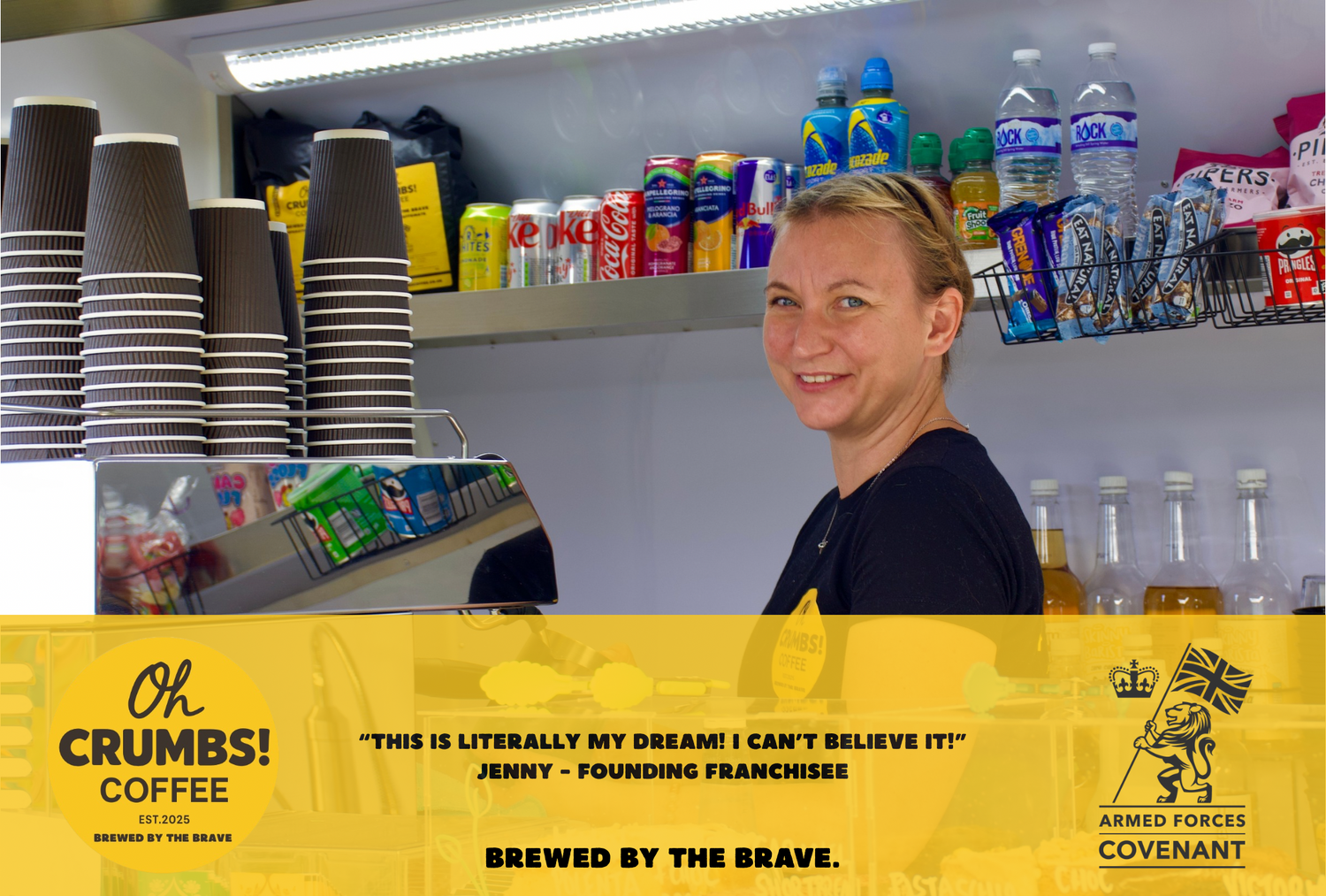 Our first franchisee, Jenny, is a true inspiration. A cancer survivor and determined entrepreneur, she’s taken her Oh Crumbs! setup and turned it into something special. Her story reflects everything we stand for — courage, character, and a damn good cup of coffee.